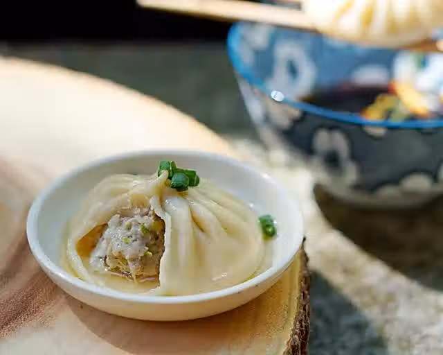 噹噹當新鮮出爐啦。看如如老闆娘加了特效的小籠包會發光