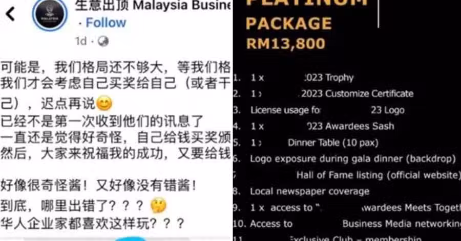 花RM33K就能給自己的企業頒獎?大馬企業家吐槽:還是華人企業家會玩!
