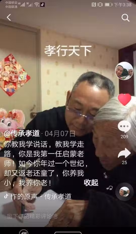 只有小學六年級文化的趙勝利,卻把這份孝心拍成了視訊,發到抖音平台上。短短一年時間,竟然擁有了50.7W粉絲,獲贊789.3W,這讓趙勝利辛苦且瑣碎的生活,多出些許歡愉,尤其在獲得眾多贊譽時,他的內心充滿了力量。「老娘,你今年多大了?」「我16了!」哈哈,這條視訊贏得70W人點贊。人越老越像小孩,不知多少個夜晚,錢敏生都拒絕上床睡覺,而是讓兒子抱著才睡得香。
