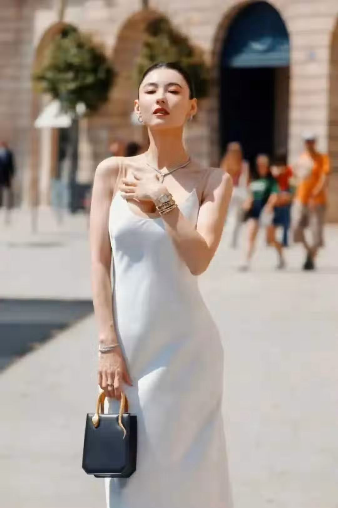 巴黎街頭,張柏芝普通脫兔一般靈巧可愛,天鵝頸,楊柳細腰,吹彈可破的皮膚,精緻的五官,沒有一絲改變。