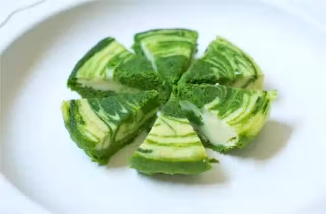 步驟一:把60克去皮山藥、一個蛋清放入攪拌機中,攪打3分鐘,山藥泥做好。另外準備60克去皮山藥放入攪拌機中,再放入焯過水的菠菜和蛋黃,攪打三分鐘,菠菜泥就做好了。