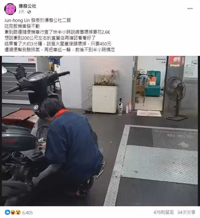 吃完飯「機車發不動」!我隨便找了附近車行,說線圈壞掉報價2600,覺得太貴改去別家,結果「老闆一開口」我傻了… # 網喊車行水很深 # 價差太誇張