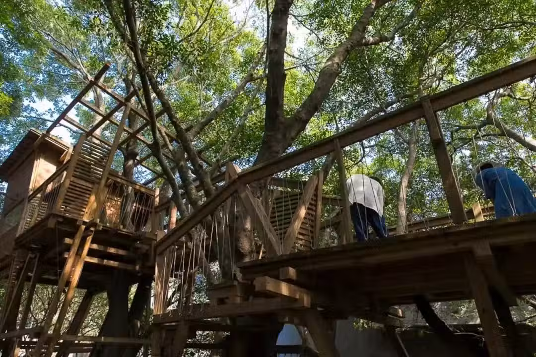 他在村裡3棵老榕樹上搭建了樹屋,平時小朋友會在這里探險,大人偶爾會在這里舉辦簡單的餐會、茶會。這里成了連接大人和小孩之間情感的地方,小朋友們長大回想起來,應該也會是不錯的回憶。