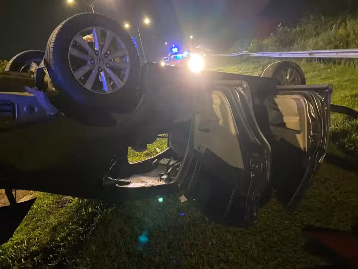 (新山14日訊)印裔男子在開車途中失控翻覆,轎車四輪朝天,當場夾斃。