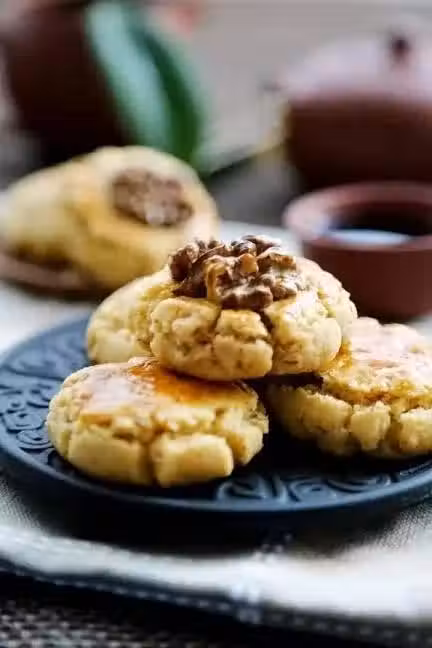 3)將核桃碎加入粉類拌勻,再將粉類倒入做法(2)中拌勻成團。