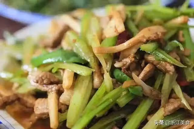 1.芹菜抽絲切段。