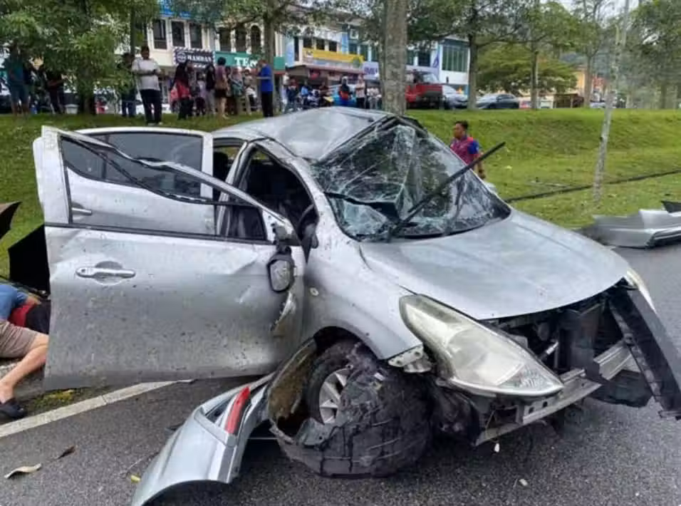 日產Almera轎車近乎全毀,車內一家四口,父親和小兒子輕傷,母親重傷,14歲女兒則傷重不治。