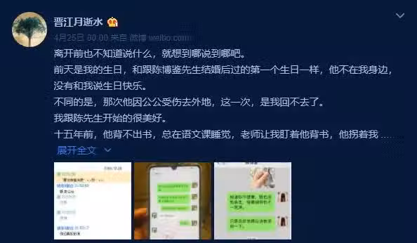 也是去年,微博上有個高達9億閱讀量的話題:晉江網文作者「月逝水」因丈夫出軌,留下定時發送的遺書後失蹤。