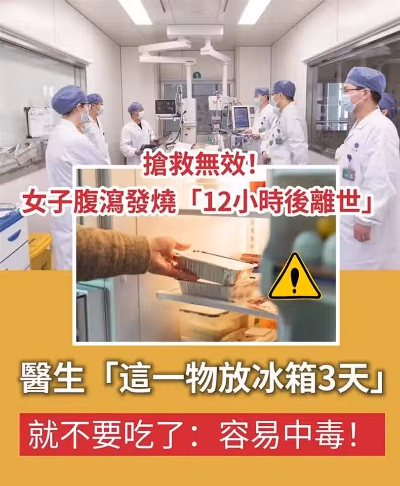搶救無效!女子腹瀉發燒「 12小時後離世 」 醫生「 這一物放冰箱3天 」就不要吃了容易中毒!