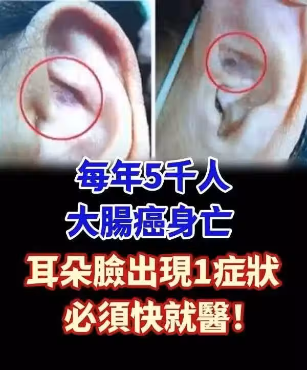 每年5千人大腸癌身.亡 「耳朵、臉出現1症狀」必須快就醫!避免後悔!
