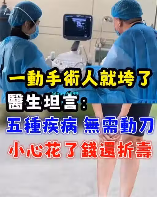 一動手術人就垮了?醫生坦言:「五種疾病」無需動刀 小心花了錢還折壽!