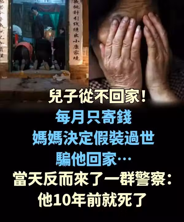 兒子從不回家!每月只寄錢 媽媽決定「假裝過世」騙他回家…當天反而「來了一群警察」:他10年前就死了