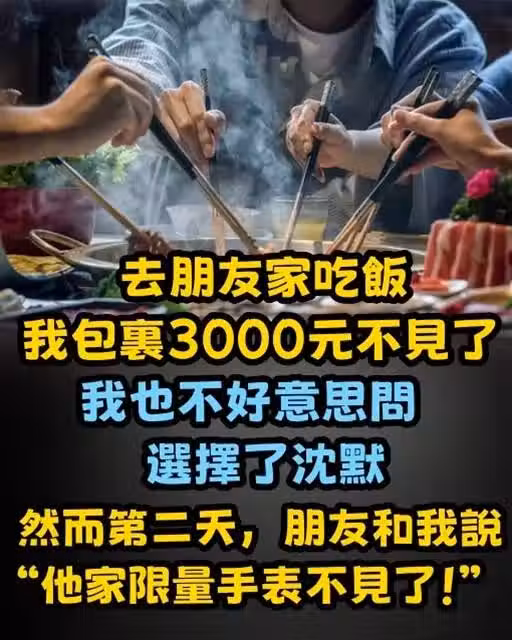 去朋友家吃飯,我包里3000元不見了,我也不好意思問,選擇了沉默,然而第二天,朋友和我說,「他家限量手錶不見了」
