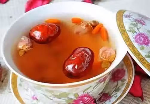 由紅棗、枸杞搭配而成。紅棗具有補中益氣、養血安神,枸杞具有補腎益精,補血安神,養肝明目,生津止渴,潤肺止咳。