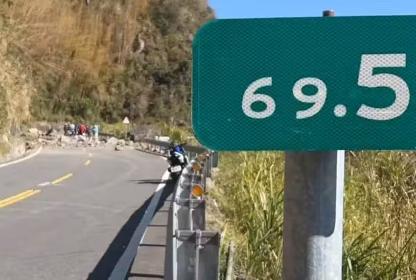 ▲嘉義今日10時許發生地震,阿里山公路出現落石,一度雙向中斷,緊急搶通中。(圖/記者翁伊森翻攝,下同)