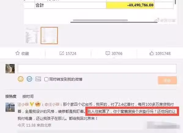 之前兩人鬧掰的時候,汪曾大罵大S豪宅的水電費他都要承擔。