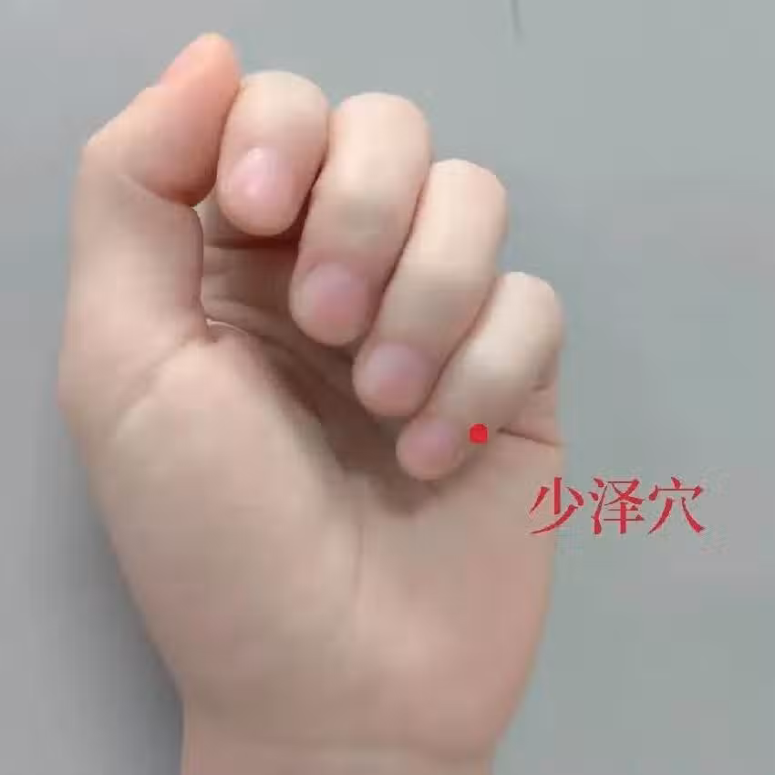 刺激少澤穴,可以採用圈狀按摩,注意用力要適中,以局部有酸脹感和輕度溫熱感為度,一天2次,每次1分鐘~3分鐘。