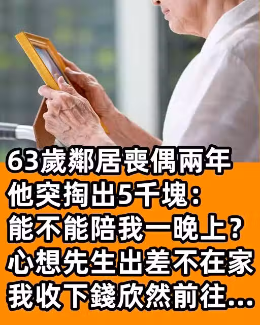 63歲鄰居喪偶兩年,他突掏出5千塊:「能不能陪我一晚上...」心想先生出差不在家,我收下錢欣然前往