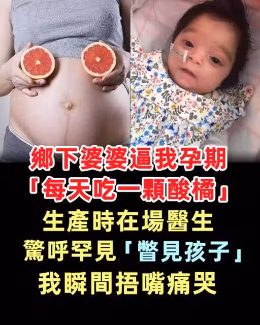 鄉下婆婆逼我孕期「每天吃一顆酸橘」,生產時在場醫生驚呼罕見「瞥見孩子」我瞬間捂嘴痛哭