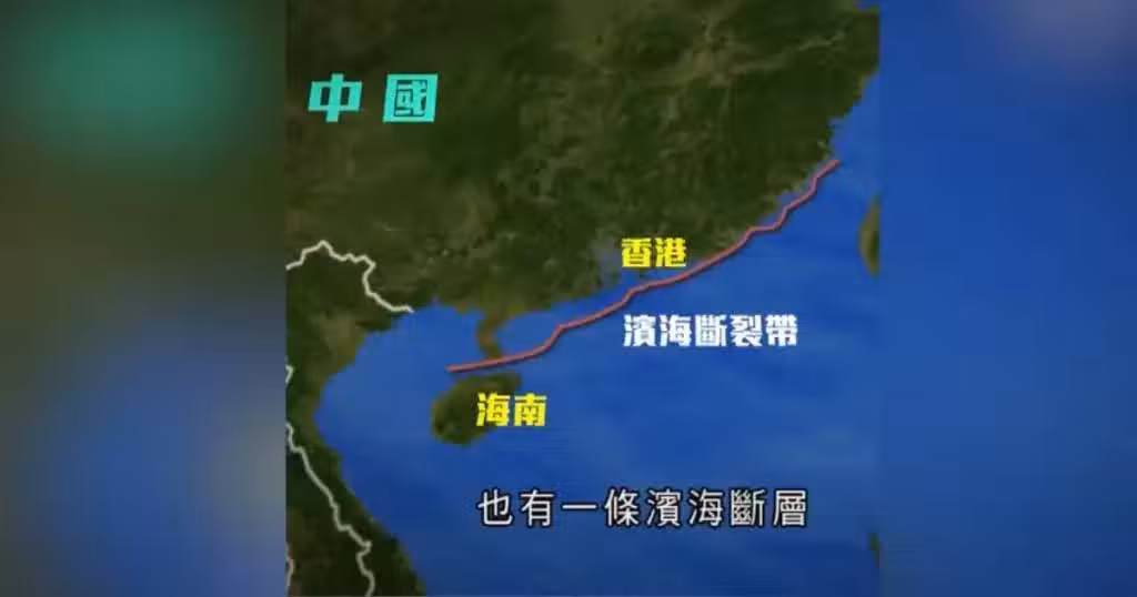 楊教授隨後就指出,香港以南50至60公里的海底存在「濱海斷層」,情況與實皆斷層相似(圖片來源:TVB新聞截圖)