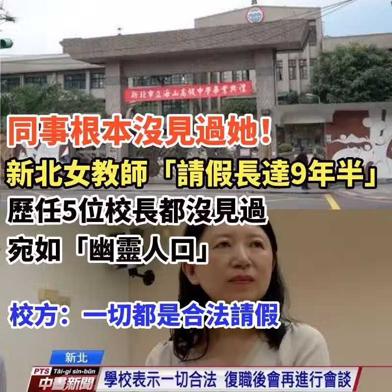 同事根本沒見過她!新北女教師「請假長達9年半」歷任5位校長都沒見過,宛如「幽靈人口」 校方 一切都是合法請假