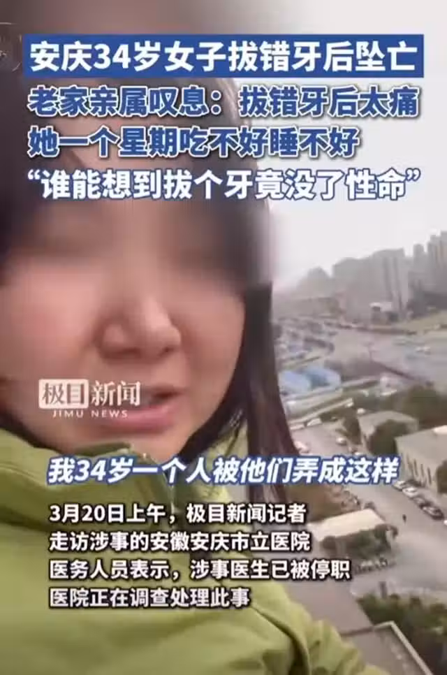 最終,這位只有34歲的女子因不堪痛苦跳樓輕生,而在結束自己的生命前,她還曾哭訴說:「從頭到尾欺騙我,誰來解救我?」從這兩件事情可以發現,拔牙遠遠沒有我們想像的那麼簡單,往小了說,拔牙後如果傷口沒有處理好,是很容易出現感染髮炎的,而對於當事人來說,又將多承受幾天的痛苦。