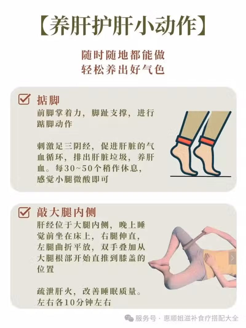 1️⃣掂腳:前腳掌著力,腳趾支撐,進行踮腳動作;有助於刺激足三陰經,促進肝臟的氣血循環,排出肝臟垃圾,養肝血。建議:每30~50個稍作休息,感覺小腿微酸即可。