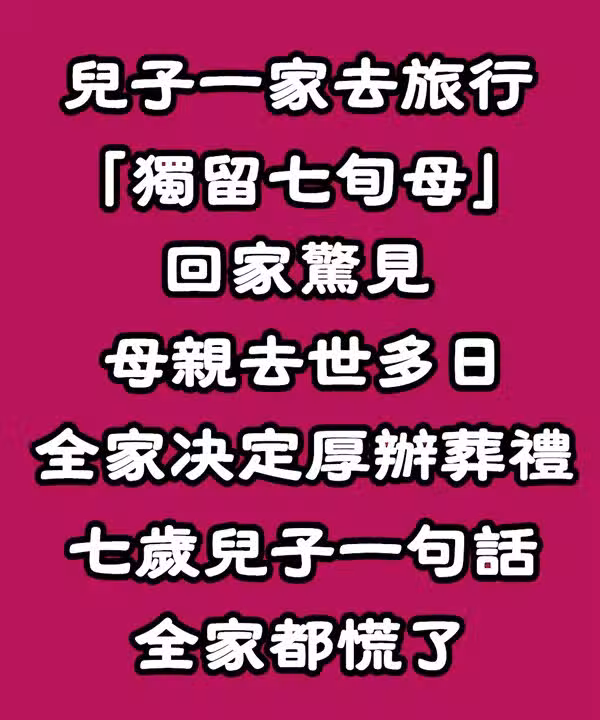 兒子一家去旅行「獨留七旬母」回家驚見「母親去世多日」傷心欲絕!全家決定厚辦葬禮「七歲兒子蹦出一句話」全家腿軟!