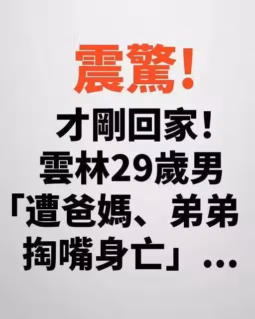 才剛回家!雲林29歲男「遭爸媽、弟弟掏嘴身亡」