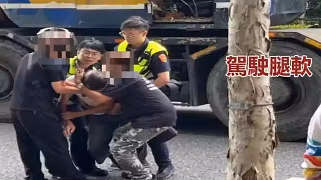 員警跟民眾加起來4個人才有辦法攙扶他,因為賴姓駕駛像暈了一樣似乎沒力氣走路,身體還往前傾倒。