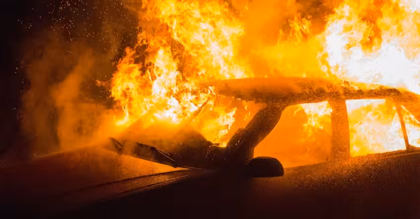 不過這台起火的轎車,引擎蓋處全被燒毀。