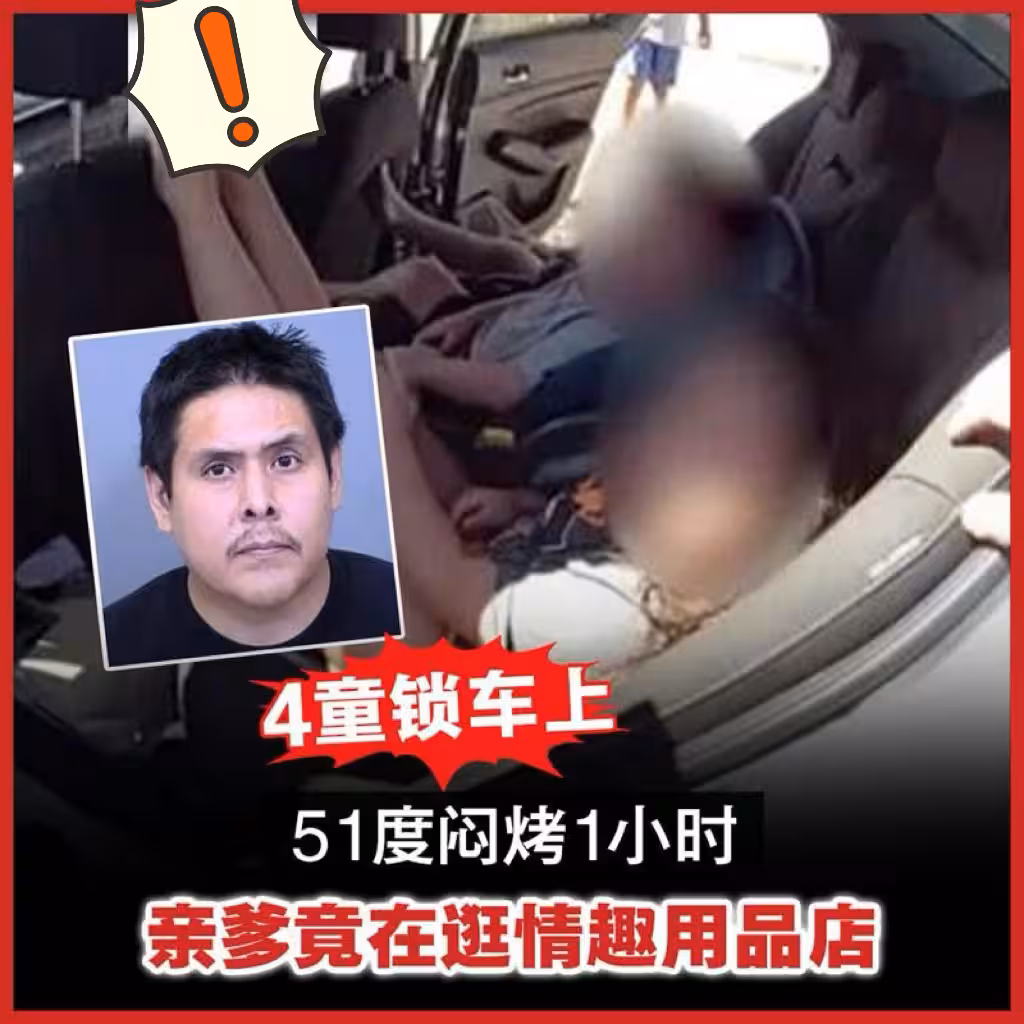 (菲尼克斯29日綜合電)美國亞利桑那州發生一起離譜事件,4名年幼孩童被鎖在未發動的密閉汽車上,隨著艷陽曝曬,車內溫度飆到51.6攝氏度,熱得就像烤箱一樣,他們的親父居然忙著逛情趣用品店。