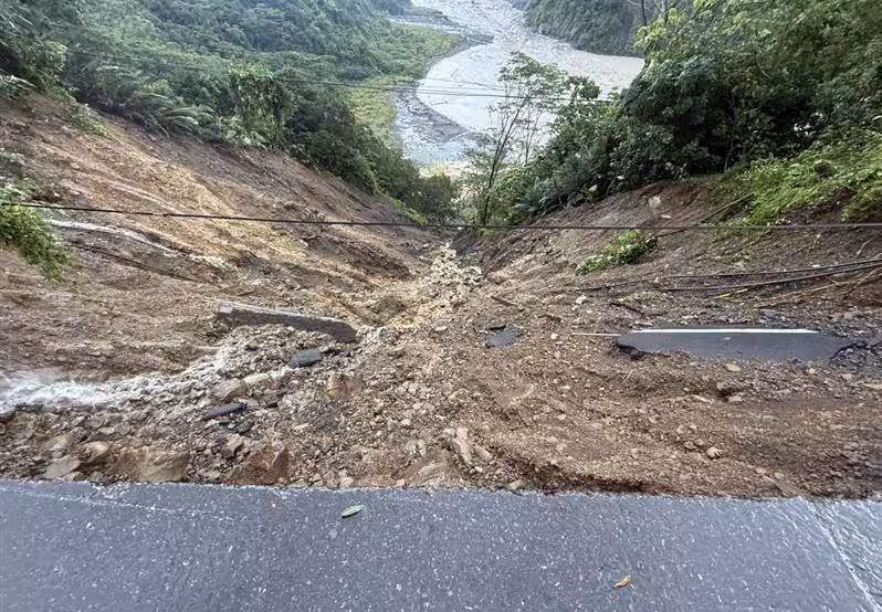 (圖/翻攝畫面)據悉,43歲蔡姓貨車司機,要從桃源區前往寶來,與一家5口會車,大雨視線不佳,NISSAN自小客車調整方向準備繼續行駛,等貨車司機看到對向車道路基已掏空,還來不及提醒,就眼睜睜看著一家子傾斜墜落深不見底山谷;