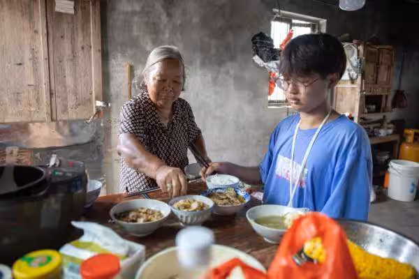 「我現在覺得日子挺幸福的。我有學上,有奶奶,還有一個小事業(小賣部)。」王偉旗笑了,陽光透過窗欞照在少年的臉上,在發光。
