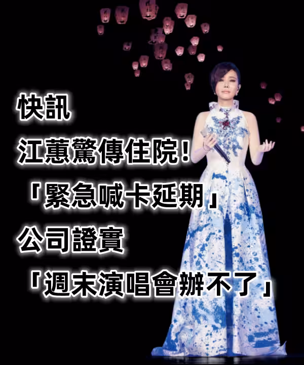 快訊/江蕙驚傳住院 「緊急喊卡延期」 公司證實「周末演唱會辦不了」
