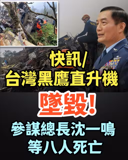 快訊/台灣黑鷹直升機墜毀,參謀總長沈一鳴等八人死亡!!