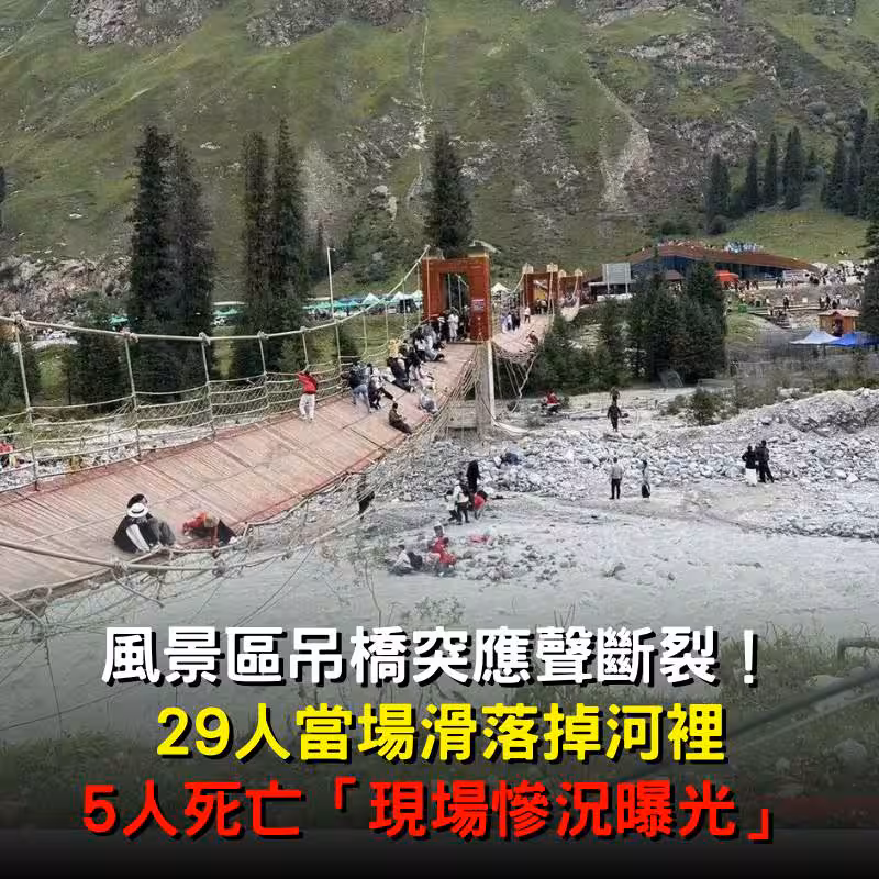 快訊/風景區吊橋突應聲斷裂!29人當場滑落掉河裡「現場慘況曝光!」