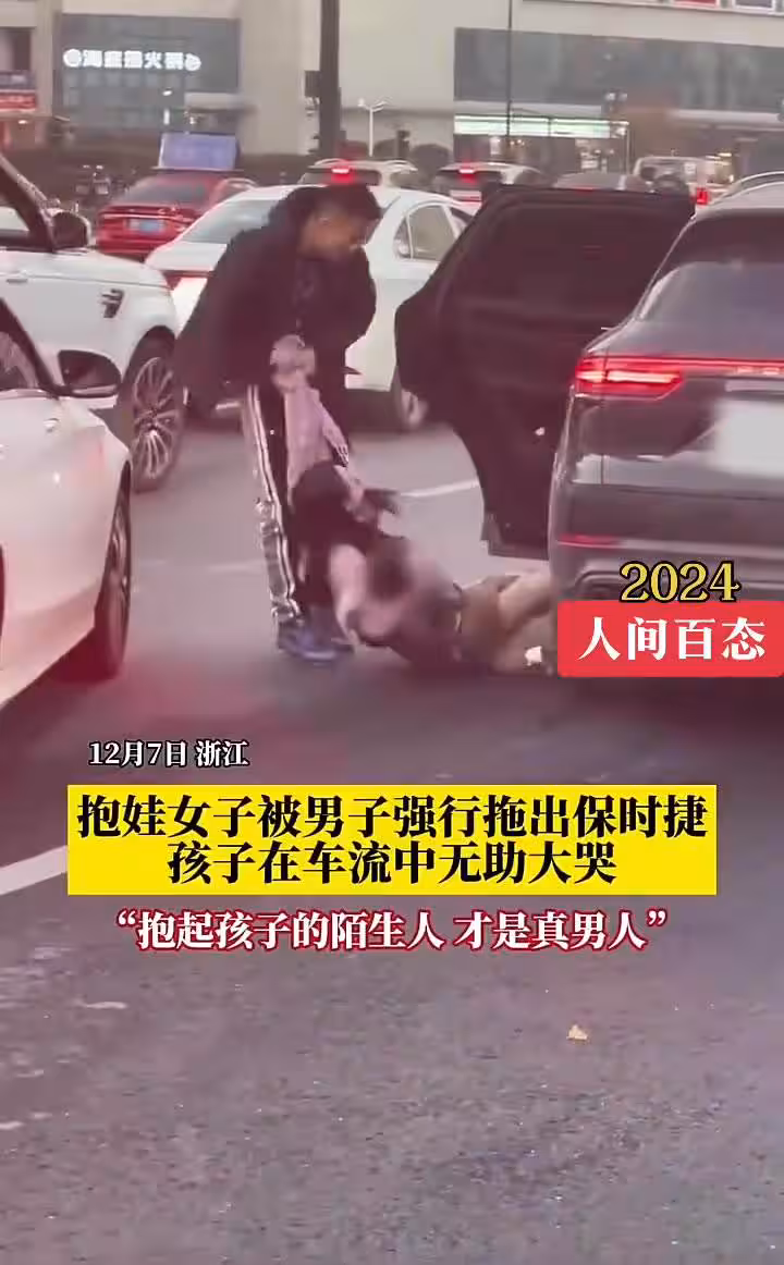 小觀剛才分享的那個影片讓人心情沉重,尤其是看到那名抱著孩子的女子被男子強行拖出保時捷,而孩子在車流中無助地大哭,場面讓人無法忽視。