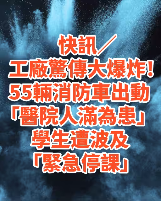 快訊/工廠驚傳大爆炸!55輛消防車出動「醫院人滿為患」學生遭波及「緊急停課!」
