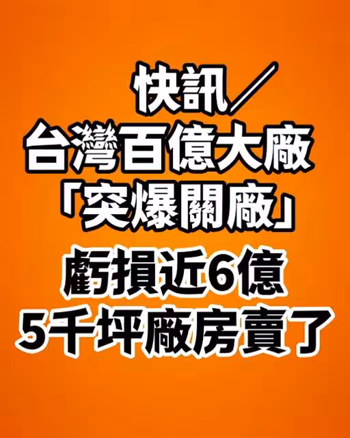 快訊/台灣百億大廠「突爆關廠」!虧損近6億 5千坪廠房賣了