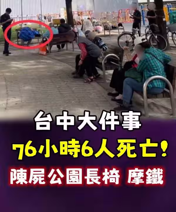 快訊/台中大件事,76小時6人死亡!陳屍公園長椅、摩鐵!