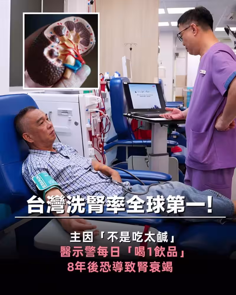 洪永祥以2019年一篇國外研究解釋,當時沒有慢性病及腎臟病、平均年齡54歲、喜愛喝含糖飲料的中年人,經過8年有6%產生腎衰竭,腎衰竭機率比一般同齡高出61%。國內的學者大部分是建議一周不要超過3杯飲料,若超過這個數目在年輕的時候可能只會覺得自己水腫或胖胖的,但過了30歲你的腎功能會比一般人衰退來的快,40歲就可能是成為洗腎患者的候選人。