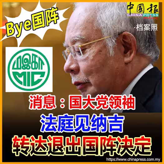 (吉隆坡9日訊)國大黨領袖據傳昨日前往法庭會見前首相拿督斯里納吉,以轉達該黨欲退出國陣的決定。