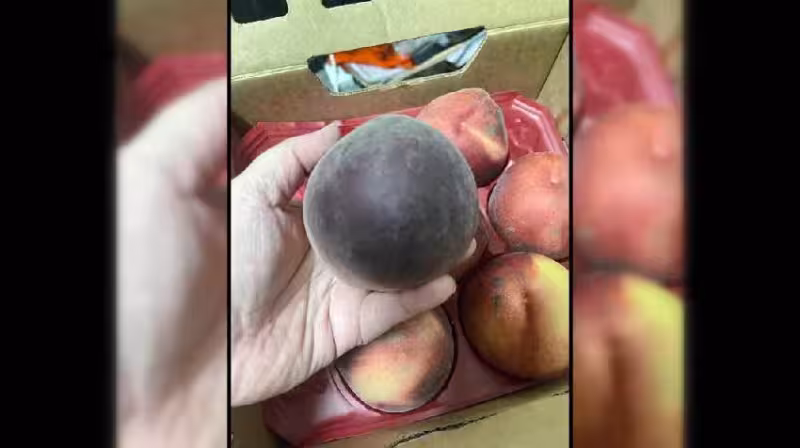 但好奇心驅使她還是決定向店員請教。 當她向店員詢問是否存在質量問題時,店員解釋道:「這些水蜜桃的外表並非腐爛,而是由於最近天氣太熱,尤其是高溫和熱浪的影響,導致水蜜桃表皮產生了這種紫黑色的斑塊,這種現象並不代表水果壞掉。 」