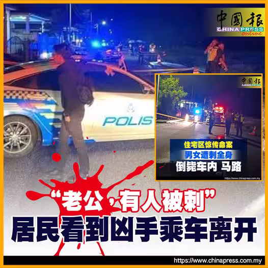 (峨占必叻12日訊)「我一走進屋子,就聽到身後的妻子高喊,老公,有人被刺!(tikam)』」