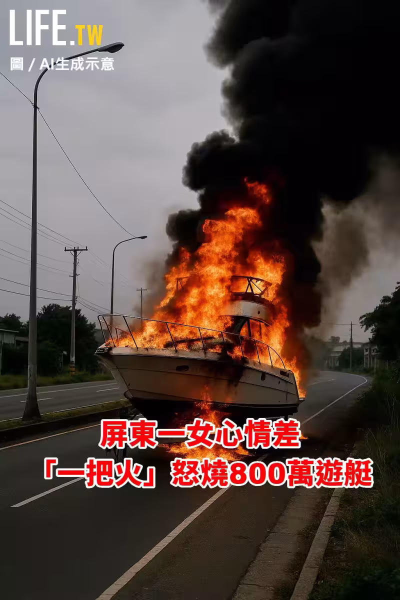 屏東女心情差喝太多,見路邊停放800萬遊艇,發狂「一把火燒了」警曝下場慘了!