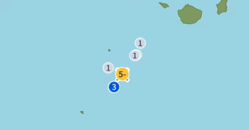 根據日本氣象廳資訊,吐噶喇群島近海今晚7時50分起,至晚間9時21分,短短1.5小時內已發生14起地震,規模最小1.9、最大4.7,震度最小1、最大5弱。