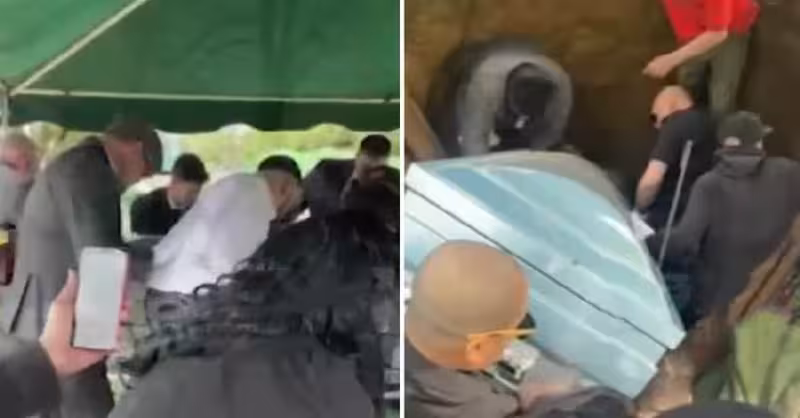 當時,幾名送葬人正抬著棺材準備安葬,但意外卻突然發生了。