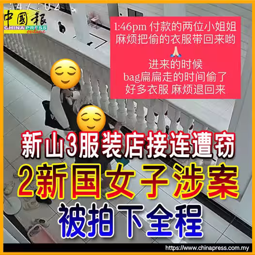 新山3服裝店接連遭竊 2新國女子涉案 被拍下全程