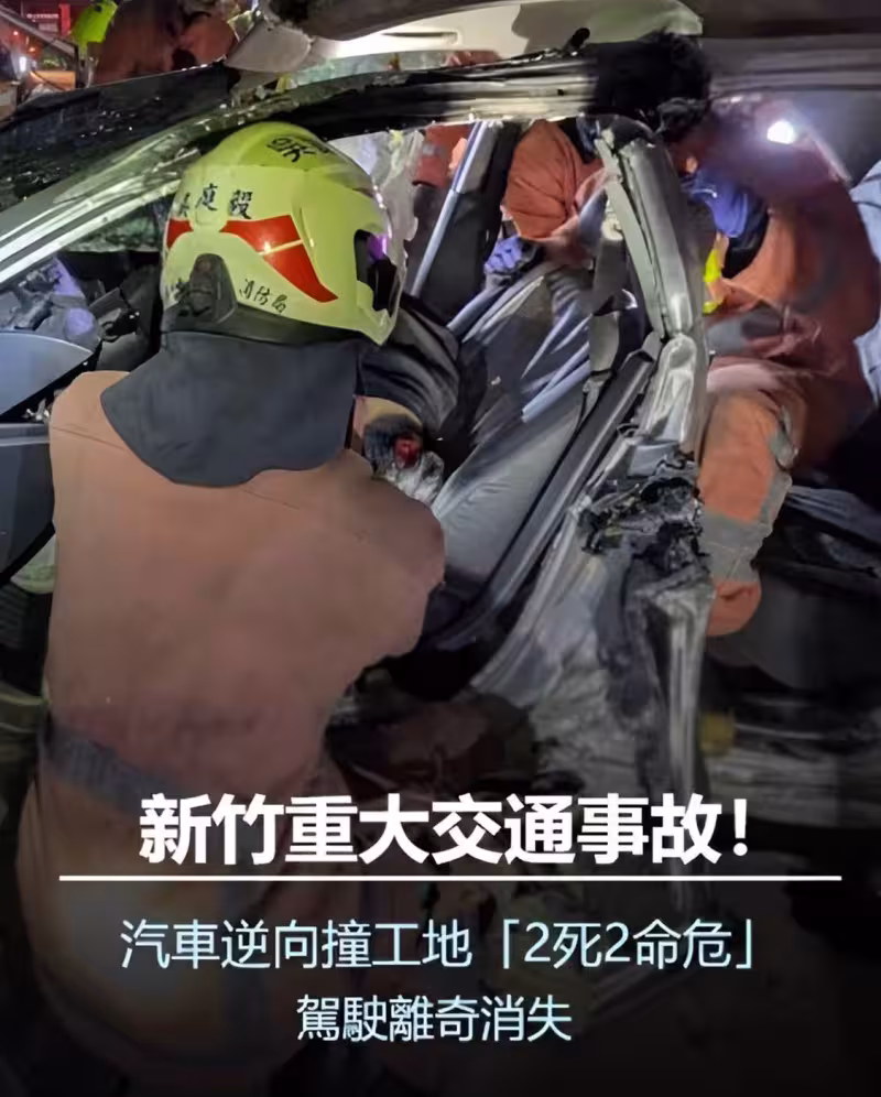 新竹重大交通事故!!汽車逆向撞工地「2死2命危」,駕駛離奇消失